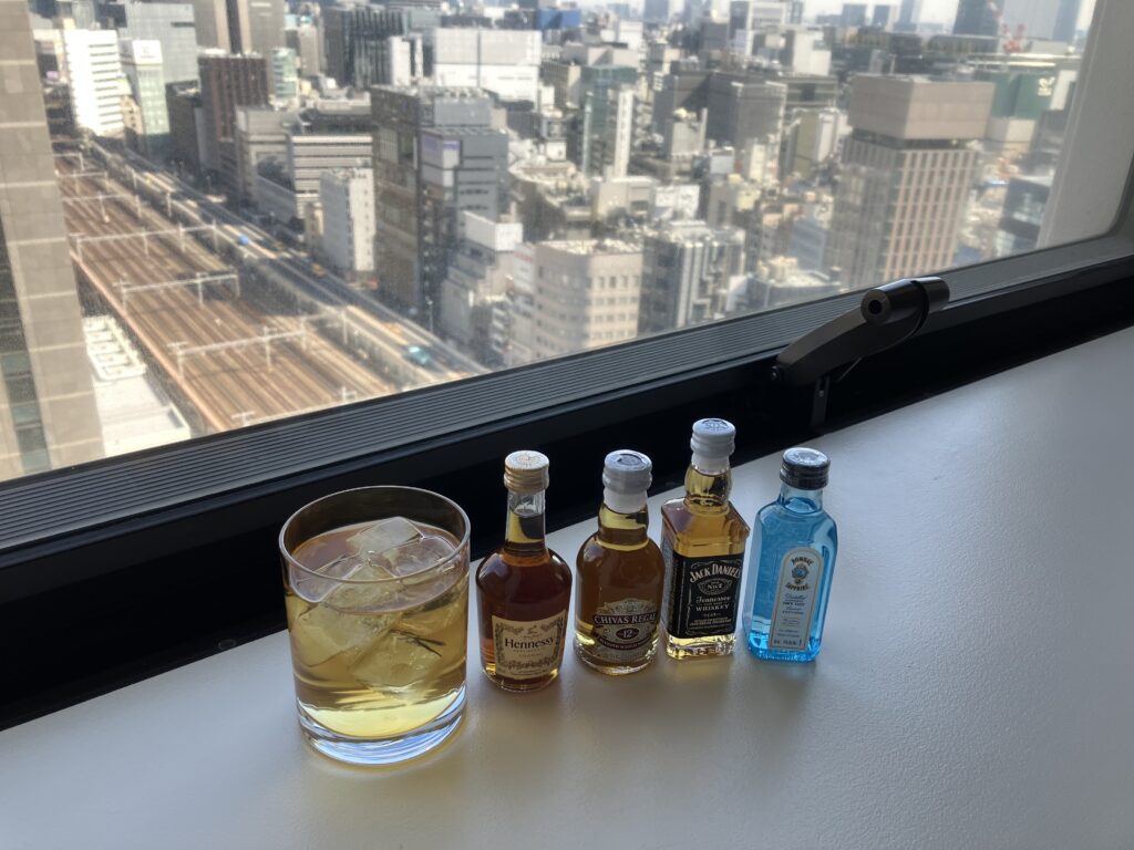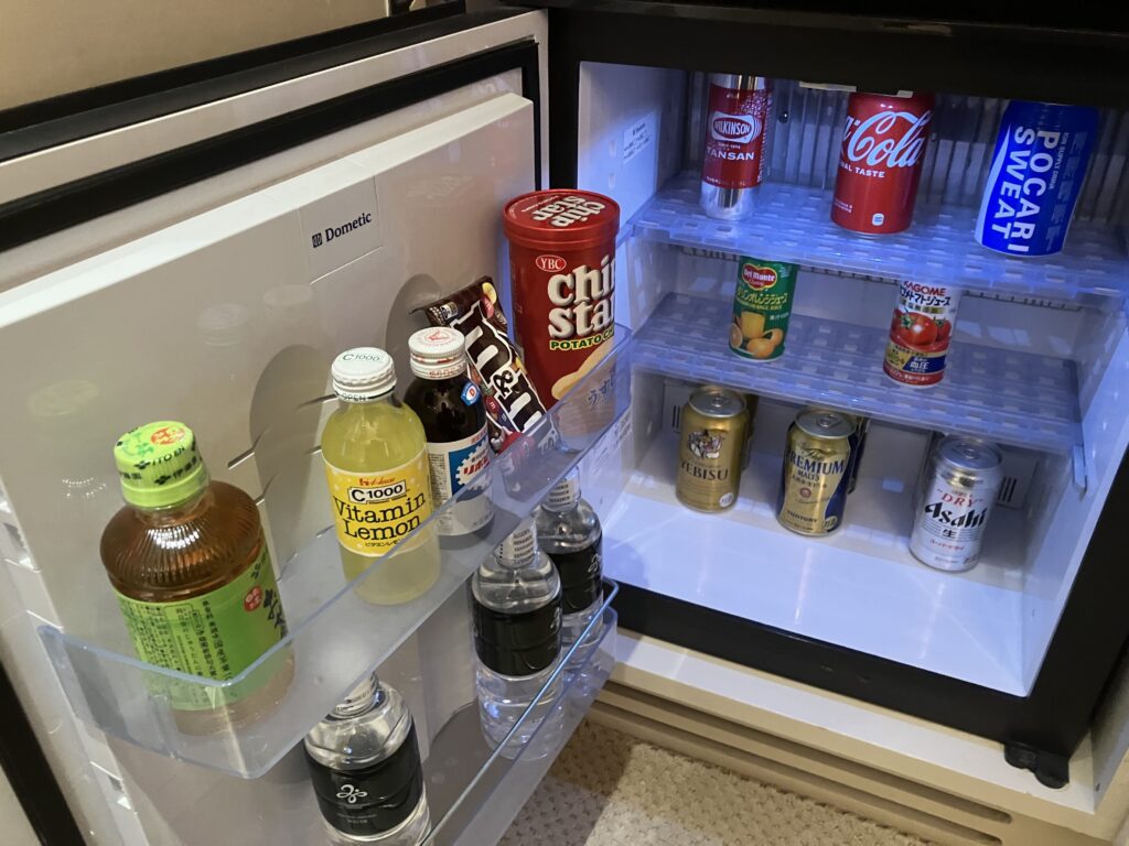 さらに、ジュニアスイートルームには、無料で利用できるミニバーがあり、アルコールをはじめいろいろなドリンクが用意されていました。補充はありませんが、1泊で飲むには必要十分な量です。