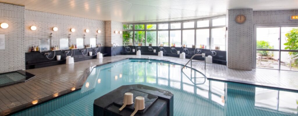 スパには内湯以外に露天岩風呂や展望風呂もあります。