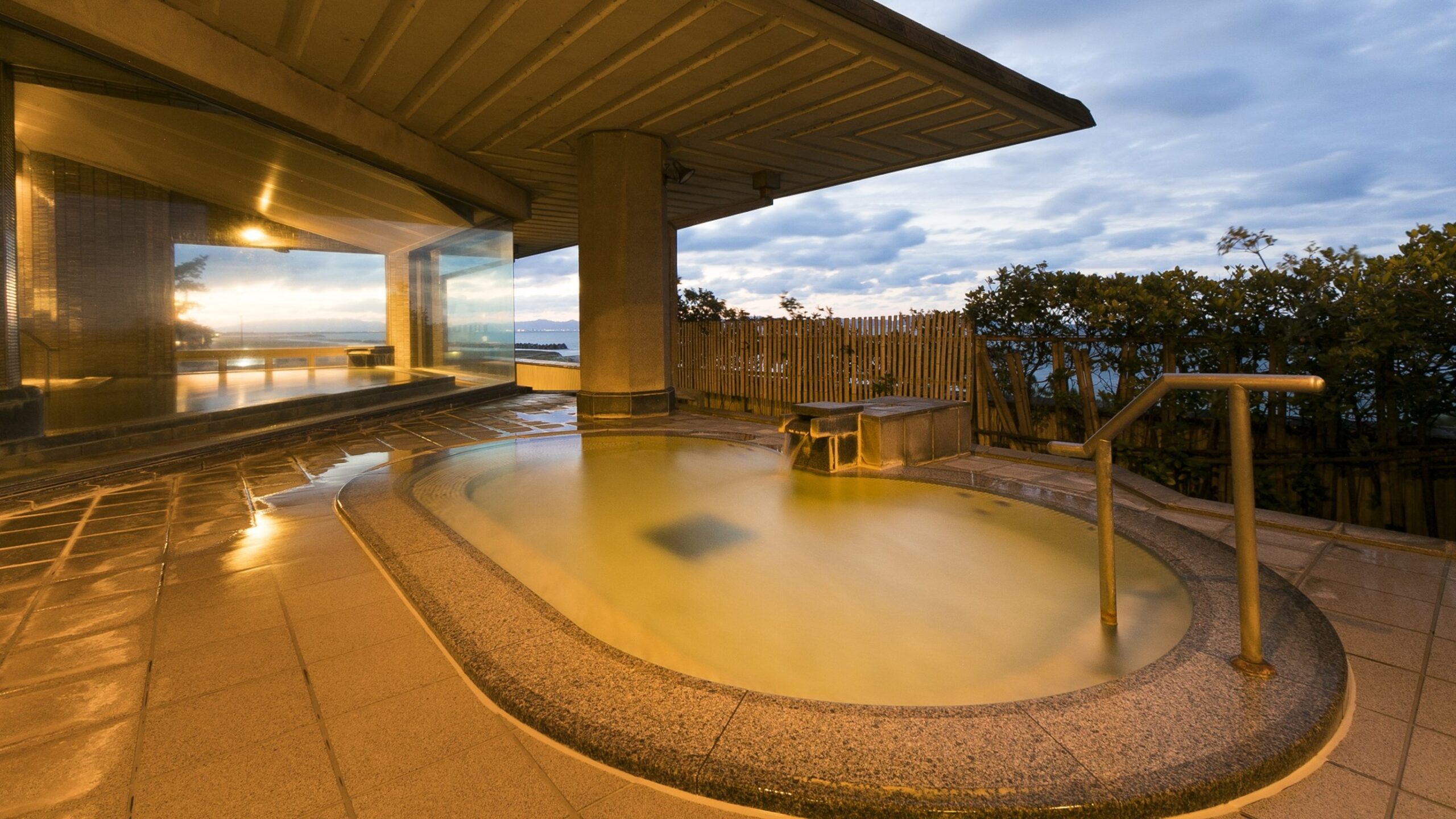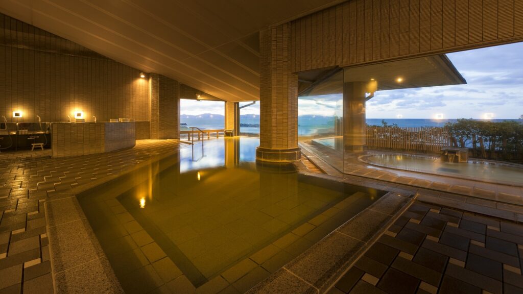 露天風呂からは日本海を一望でき、日の出や夕日を眺めながら癒されます。