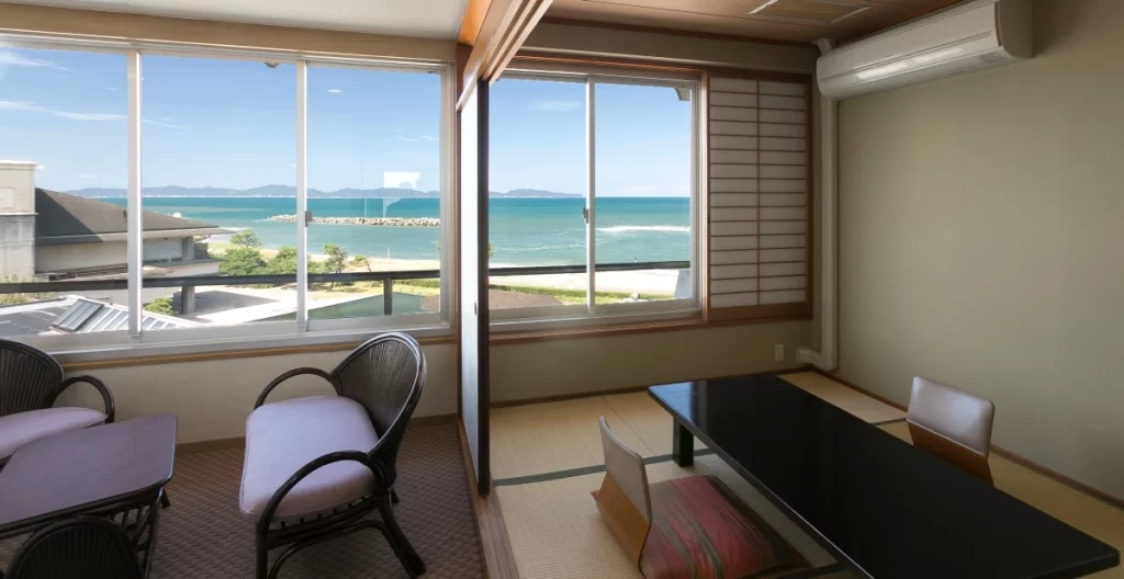 弓ヶ浜のほとりに建ち、夏は海水浴やマリンスポーツを楽しむことができます。