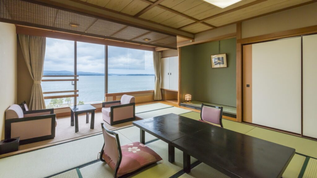 特に新館「涌浦館」は高台に建ち、窓いっぱいに七尾湾と能登島が見渡せます。