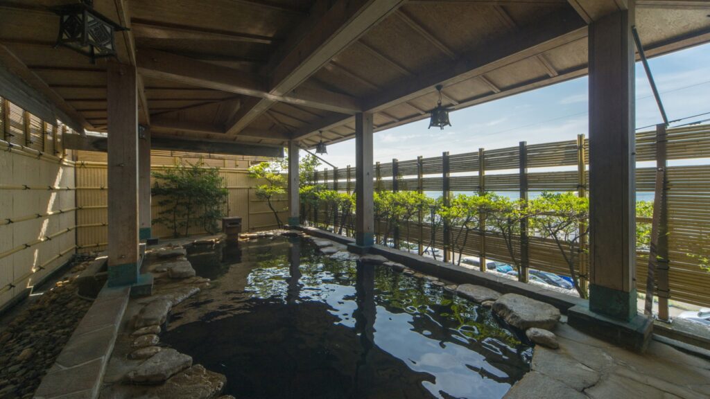 この旅館の魅力は、和倉温泉の源泉を加水も加温もせずぜいたくにもかけ流している大浴場と露天風呂でしょう。