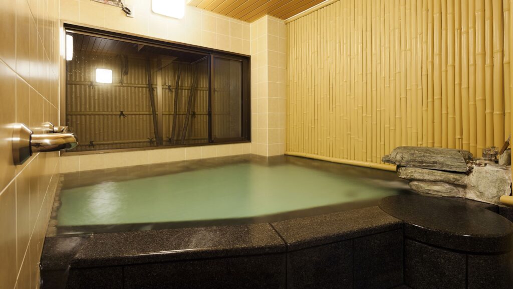 この旅館では大浴場・露天風呂ともに源泉を100%かけ流しして利用しているとのこと。