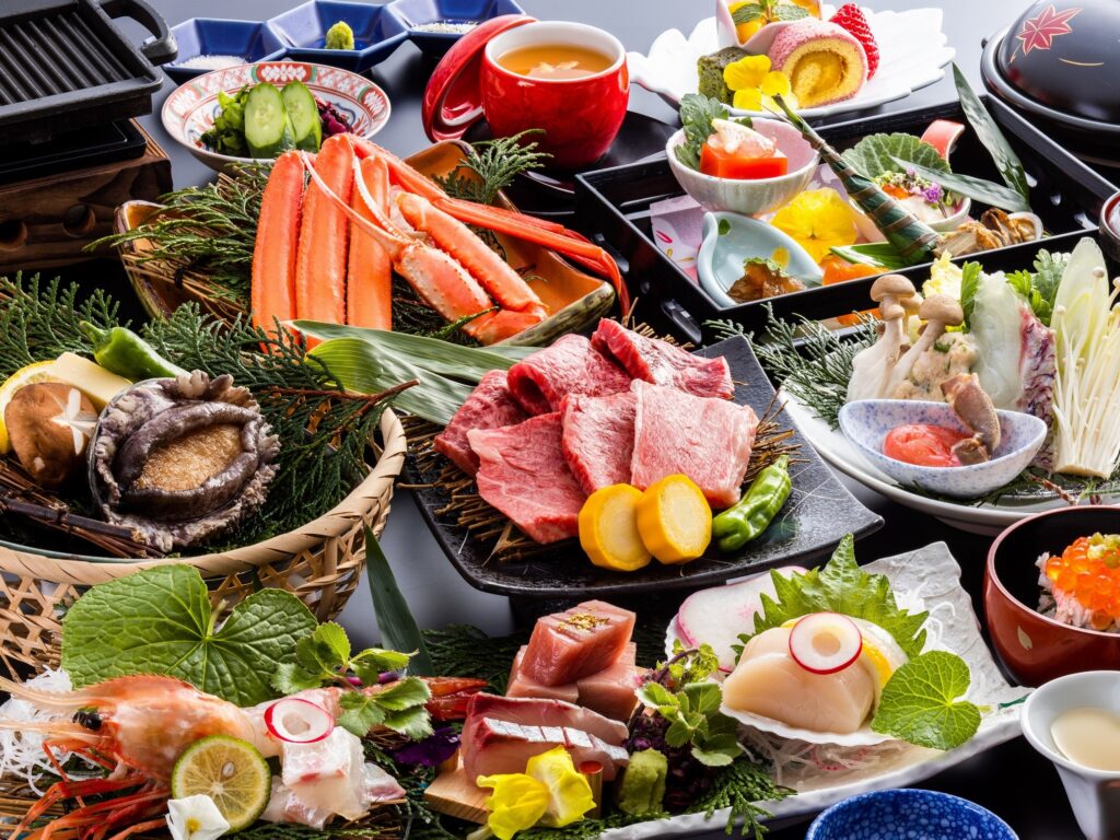 冬は自慢のかに料理、他の季節では絶品但馬牛に極上あわび等、