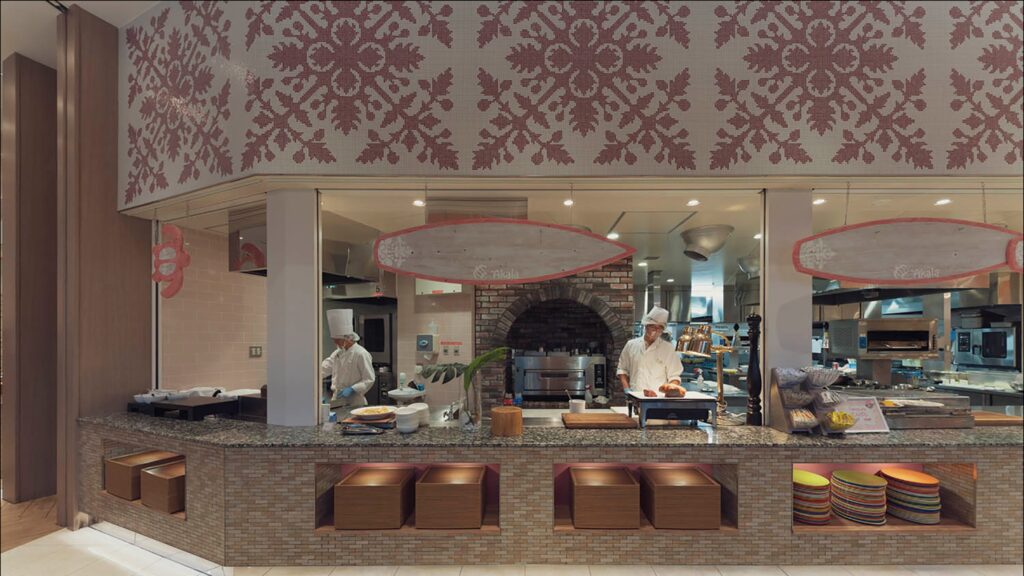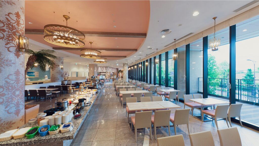 ホテルの朝食は館内のレストラン、ブッフェダイニング「アーカラ」でいただきます。