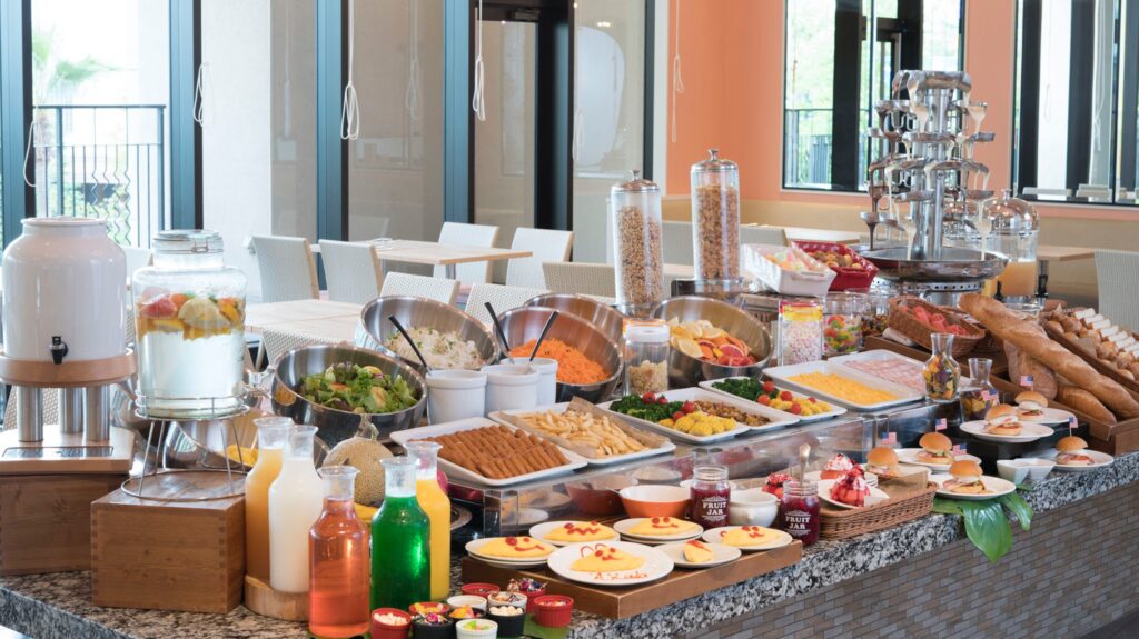他にも、豊富なパンやフレンチトースト、洋食、和食メニュー、デザートに至るまで、ブッフェ形式で食べ放題です。