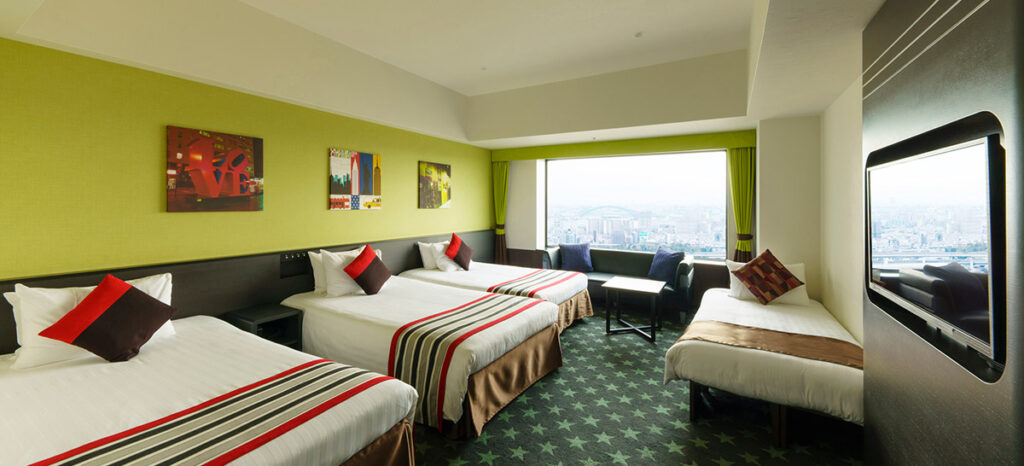 ロケーションは大阪シティビューとパークビューがあり、パークの真正面にあるこのホテルではやっぱりパークビューがおすすめです。